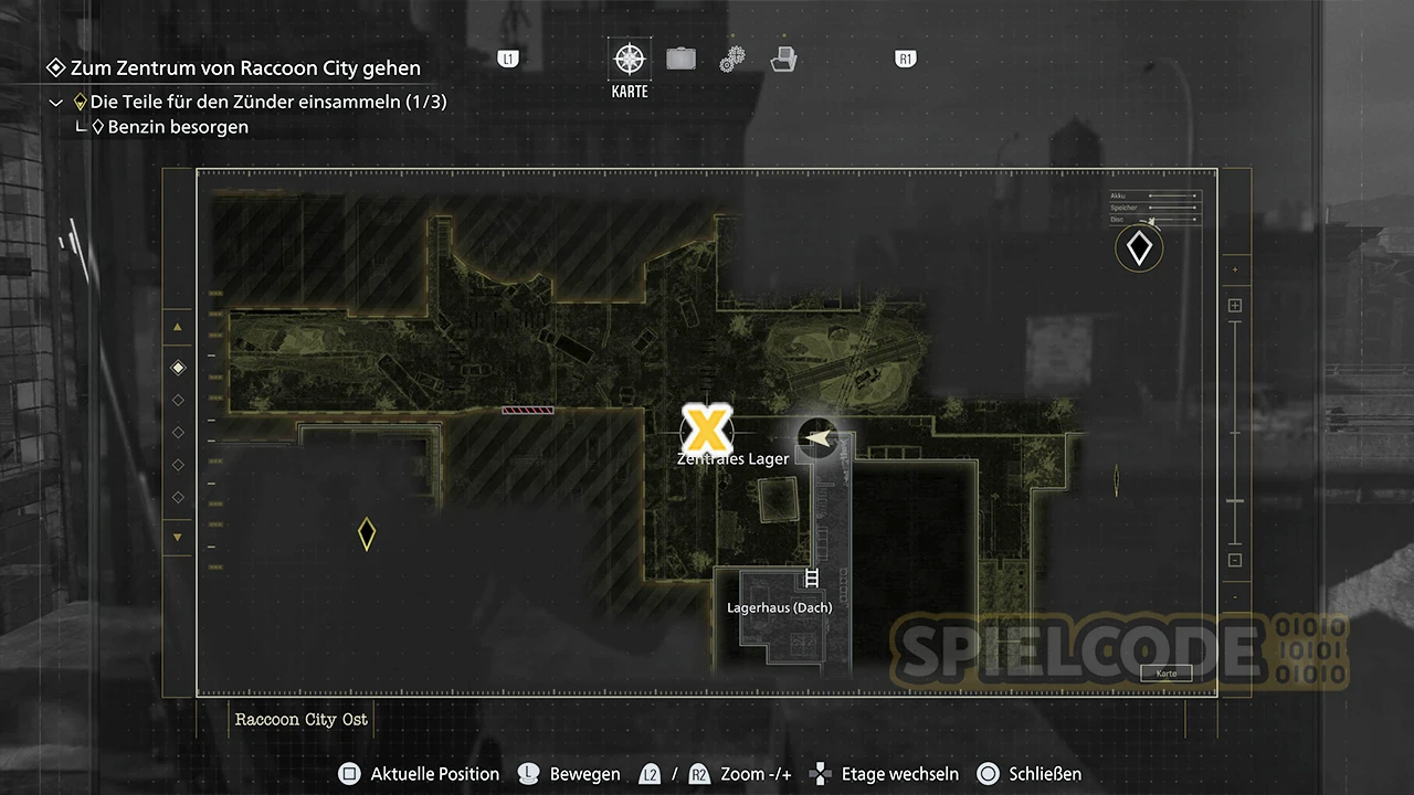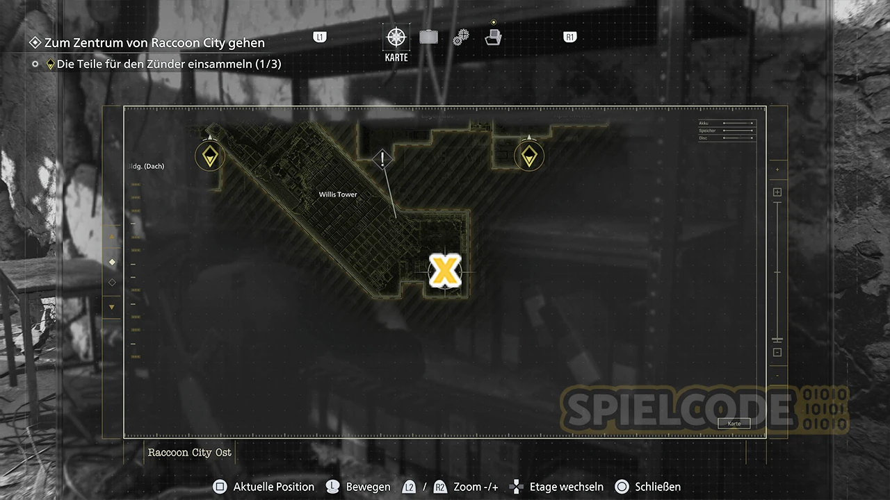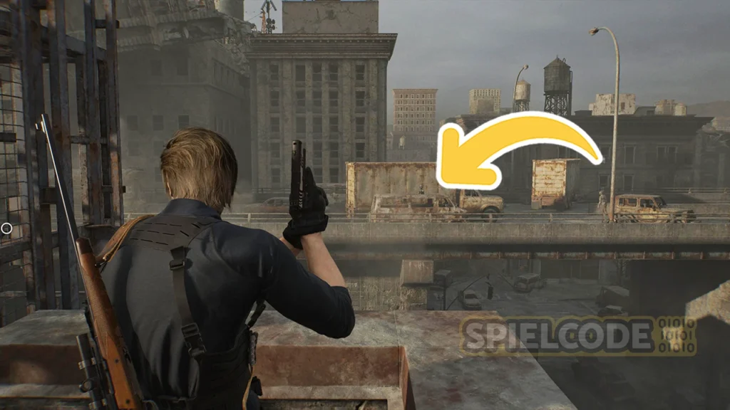 Diese Figur ist schon recht gut versteckt und leicht zu übersehen. Wenn du in Racccoon City nach dem Relais suchst, fährst du auf dem Dach des Lagerhauses mit einer Seilrutsche über Willis Tower.