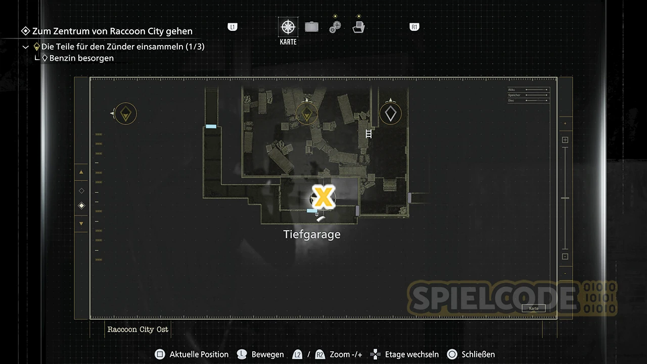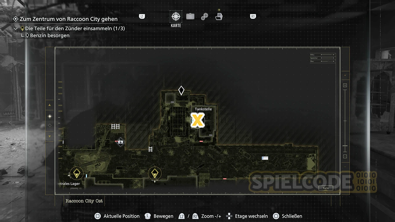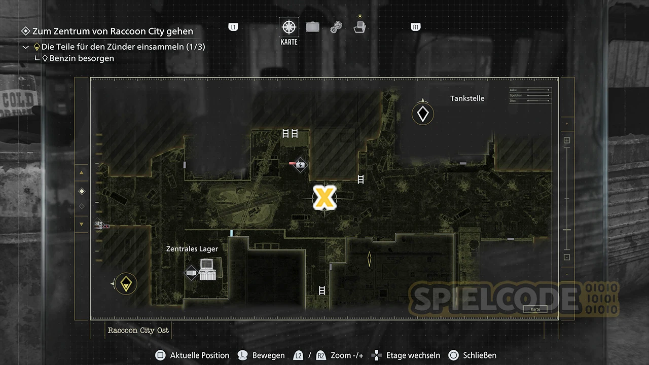 Ein putziges Kerlchen wartet in der Tankstelle von Raccoon City Ost. Du musst zunächst die beiden Batterien in der Tiefgarage finden, um zur östlichen Seite des Abgrund zu gelangen (über Apartments).