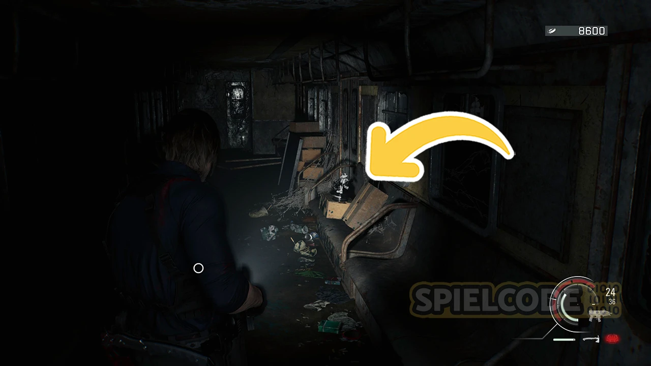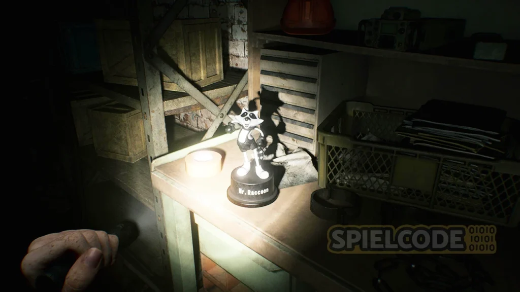 Die nächste Figur hat sich ganz allein im Dunkeln versteckt. Sie sitzt im ersten Raum, auf dem Weg zur Tiefgarage fest und wartet auf einen neuen Freund gegen die Einsamkeit. Du kannst diesen Ort erst erreichen, wenn du den Verteiler für die Bombe hast bzw. die Schlüssel für die Apartments. Denn nur so kommst du vom BSAA-Lager in die Tiefgarage.