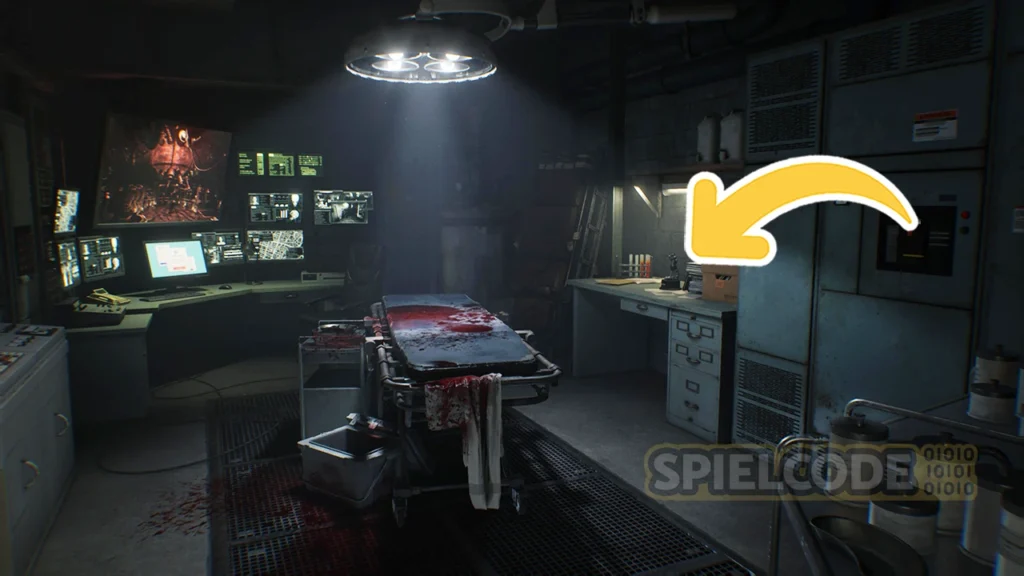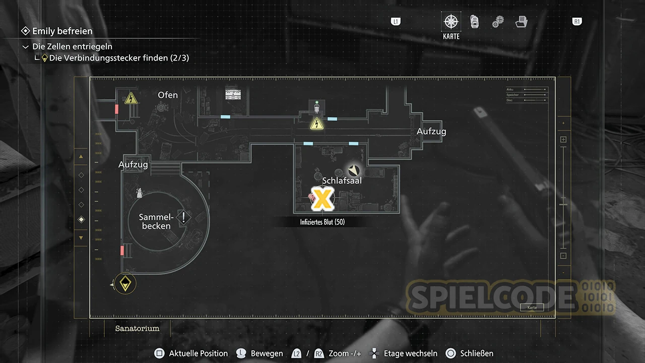 Nun gibt es aber noch eine weitere Figur im Sanatorium, die gar nicht mal so leicht zu finden ist. Im Nebenzimmer der kleinen Emily gibt es eine weitere Stufe-3-Sicherheitstür. Diese Tür bekommst du erst dann auf, wenn du die Sicherheits-ID der Stufe 3 besitzt. Du kannst Emily jederzeit im Medikationszimmer absetzen und hier dann vorbeischauen.