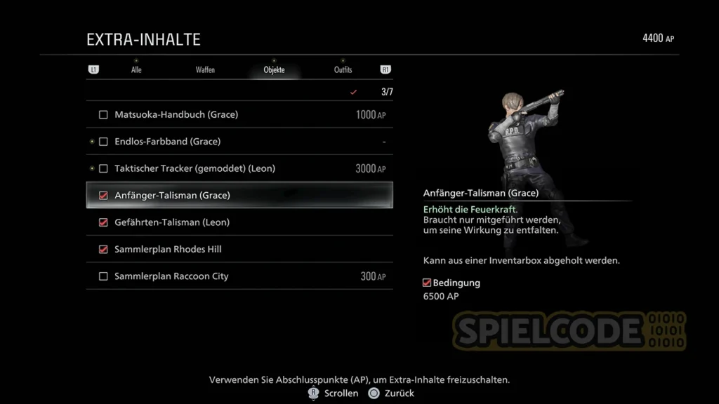 Wie erhalte ich diesen Talisman? Es gibt zwei Talismane, die du nur über die Resident Evil Requiem Deluxe Edition erhältst. Das ist unter anderem der DSO-Talisman für Leon, der die Präzision und kritische Hitrate erhöht. Leon muss ihn nur im Inventar mitführen.