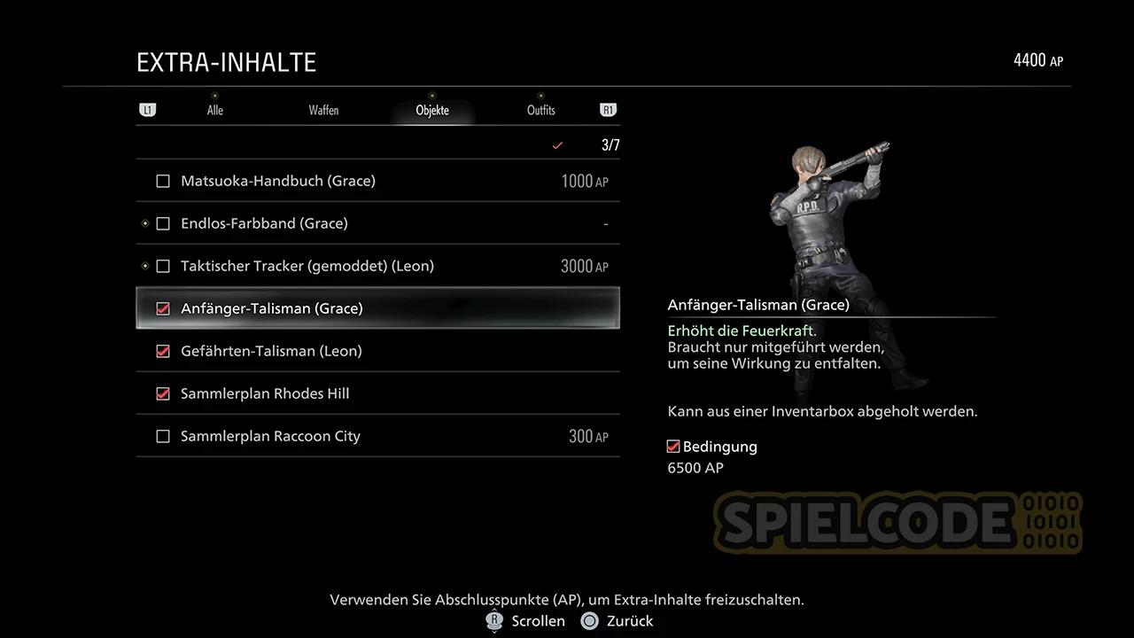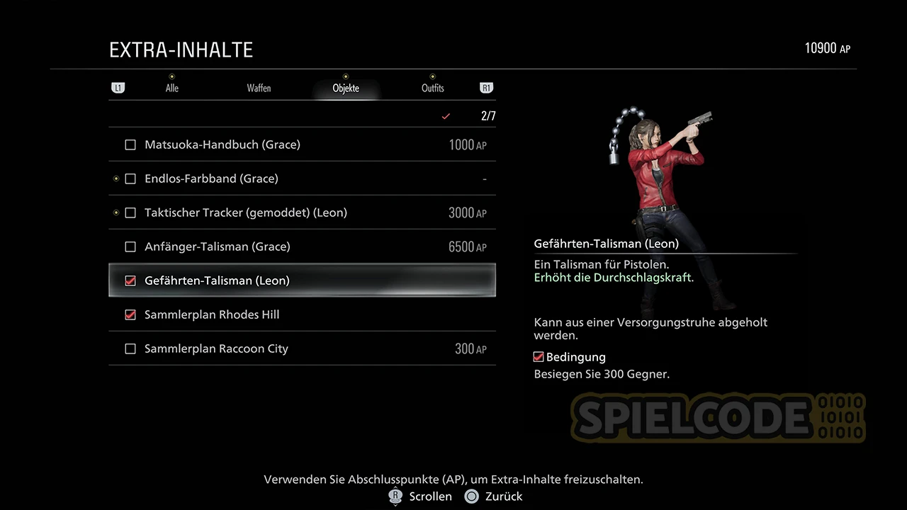 Wo finde ich diesen Talisman? Dieser Talisman ist nicht für alle gedacht, da diese Inhalte an den DLC: Letters from 1998 gebunden sind. Wenn du den DLC hast, findest du fünf Briefe im Spiel und danach liegt der Talisman dann an seinem Zielort. Der DLC startet, wenn du das Raccoon City erreicht hast.