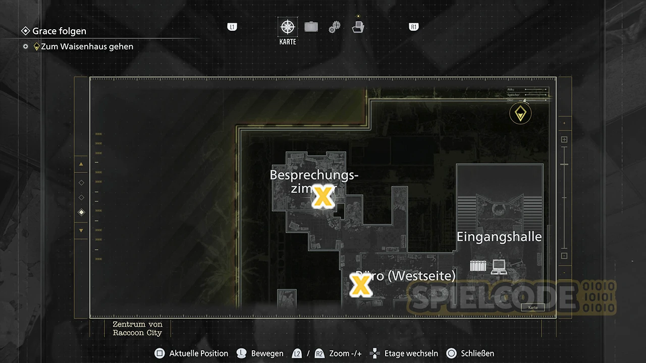 Wie lautet die Lösung für S.T.A.R.S.-Koffer? Du findest den Code, indem du auf die Leere Schublade im Büro des Chefs schießt. Du musst sie öffnen und dann von oben auf das leere Fach schießen. Dann fällt die Notiz Büchereikarte herab.