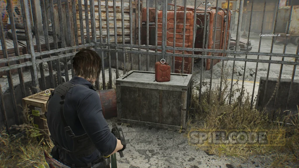 Nun machen wir einen kleinen Abstecher zur Tankstelle, da wir Benzin für den Generator benötigen, der im Westen beim großen Loch still steht. Der Haupteingang ist allerdings versperrt. Ein Stück weiter links findest du eine Leiter, die du abschießen kannst. Folge dem Pfad nun in die Tankstelle.