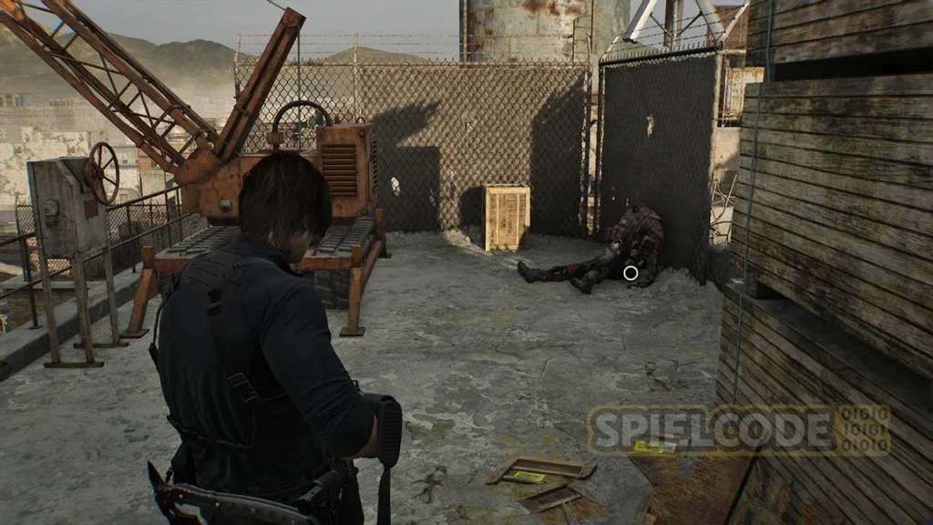 Leider gibt es hier viele Zombies. Du musst ganz nach oben, um zum Kran abrutschen zu können. Aktiviere die erste Seite des Krans und nimm dann rechts neben dem Kran die Leiter zur anderen Seite.