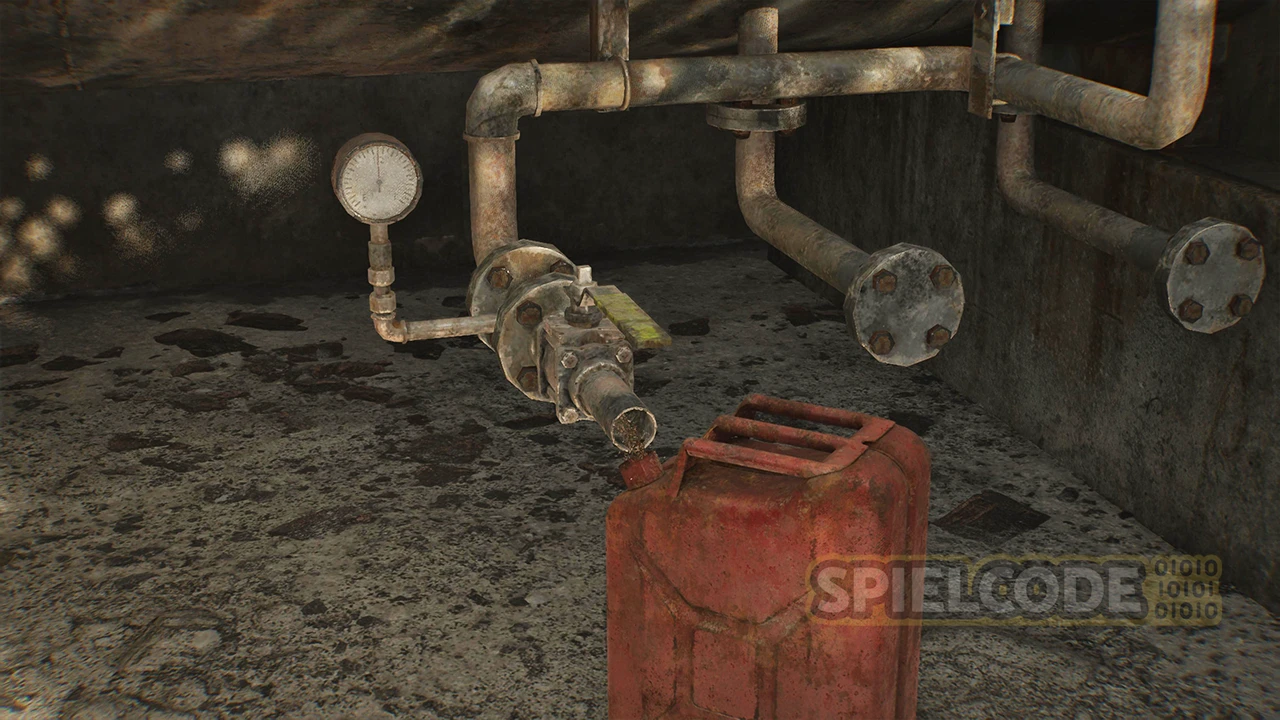 Nun machen wir einen kleinen Abstecher zur Tankstelle, da wir Benzin für den Generator benötigen, der im Westen beim großen Loch still steht. Der Haupteingang ist allerdings versperrt. Ein Stück weiter links findest du eine Leiter, die du abschießen kannst. Folge dem Pfad nun in die Tankstelle.