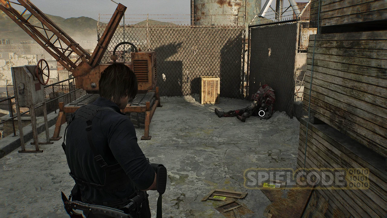 Es folgt eine weitere Sequenz mit 1000 Zombies. Töte alle oder laufe bis zur Spitze, wo du den Kran dann am Drehrad bedienst. Falls du das andere Rad noch nicht gedreht hast, spring kurz rüber und der Kran fährt dich nach unten!
